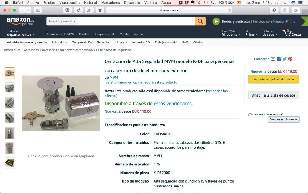 Una vez dicho esto, sigo subiendo a nuestra tienda de Amazon nuestras Cerraduras MVM, mientras,