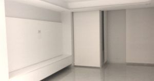 Se trataba de un piso diseñado bajo una estética minimalista, donde el blanco y el cristal dominaba todas las estancias; y donde la puerta de entrada se integraba visualmente en un panelado blanco de madera. Tras valorar la variedad de colores en las que fabricamos el dispositivo, el ganador por razones obvias fue el blanco.