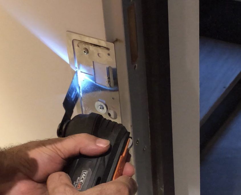 Dadas las características de la puerta y el diseño, se optó por encajonar el dispositivo B-LOCK en la propia pared, respetando al máximo las líneas y el diseño existente.
