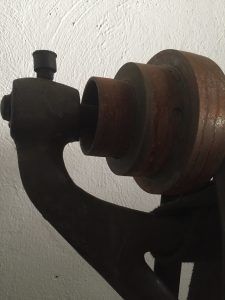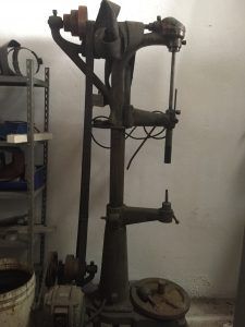 Estaba dándole vueltas a este tema el otro día por la fábrica y me encontré con esta maravilla que nadie acierta a decirme de qué año es, porque todos recuerdan como propio: «Siempre ha estado». Resulta que es el primer taladro vertical que compró Vicente, el inventor de nuestro B-lock, cuando empezaba en el mundo de la cerrajería. Es una maravilla que compró de segunda mano (parece de los cuarenta) con un motor eléctrico de 2,5 KW que activa el portabrocas